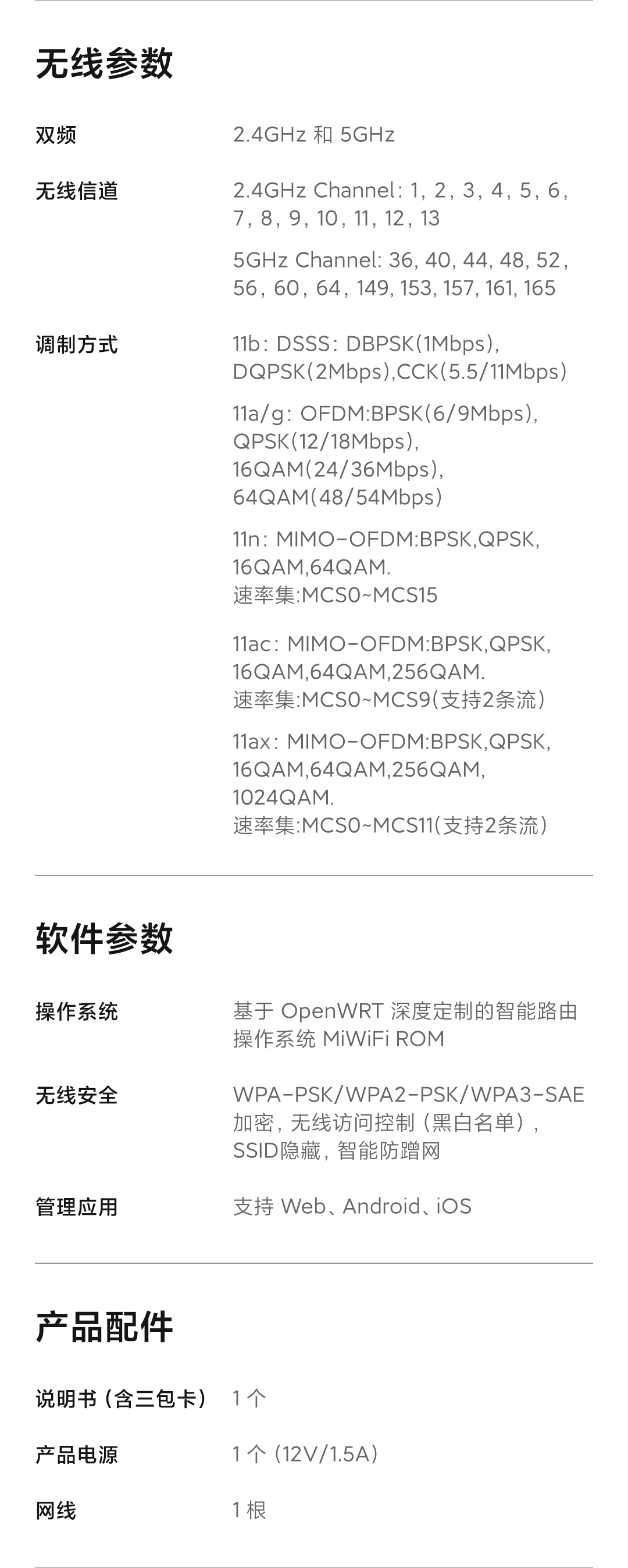 5 ГГц WiFi: 2x2 (максимальная поддержка протокола IEEE 802.11ax, теоретическая максимальная скорость может достигать 2402 Мбит / с)