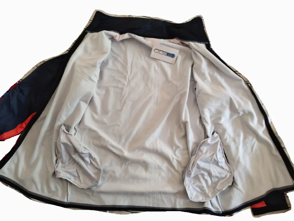 С 2 карманами, застежкой-молнией, байкерскими капюшонами. 100% полиэстер.