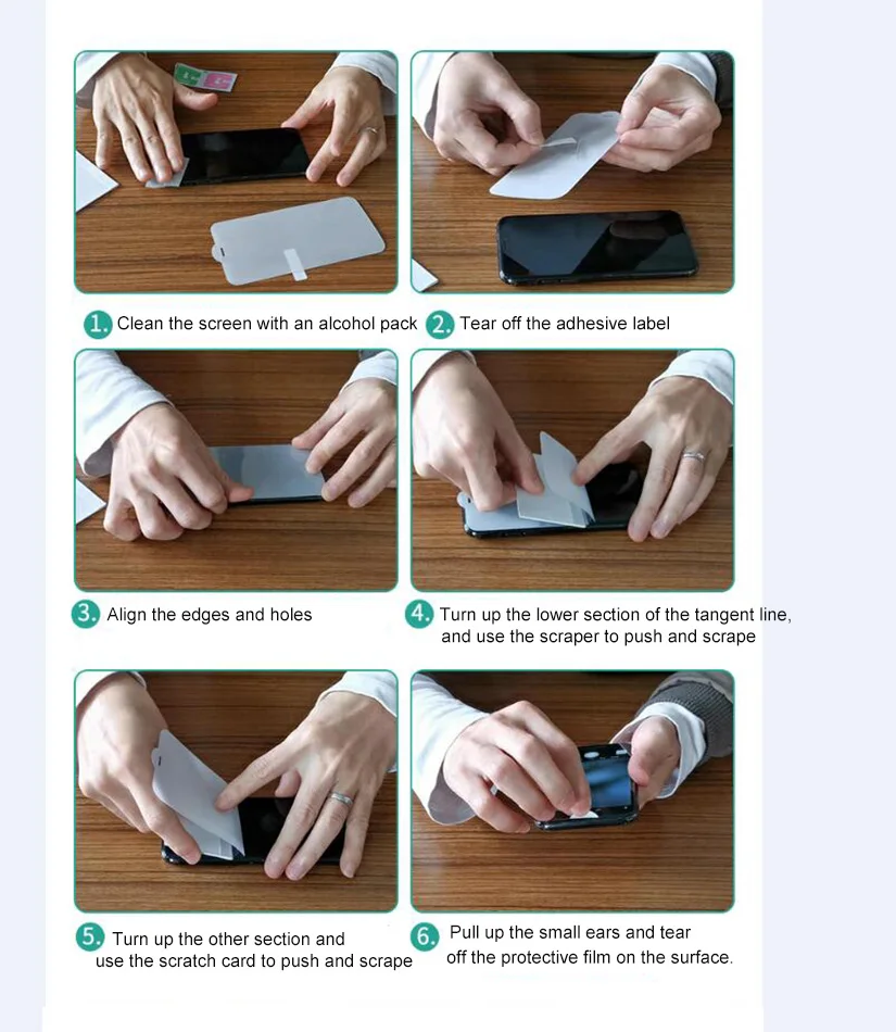 1) из-за сложности пленки, пожалуйста, внимательно наблюдайте за операционным видео перед установкой защитной пленки.