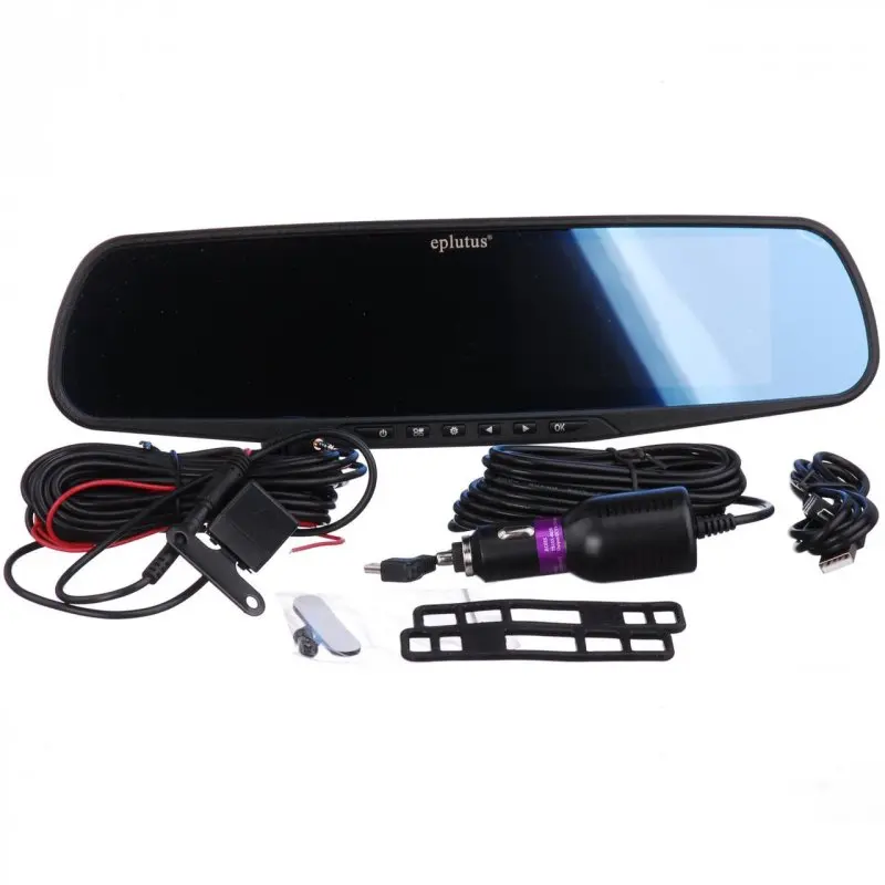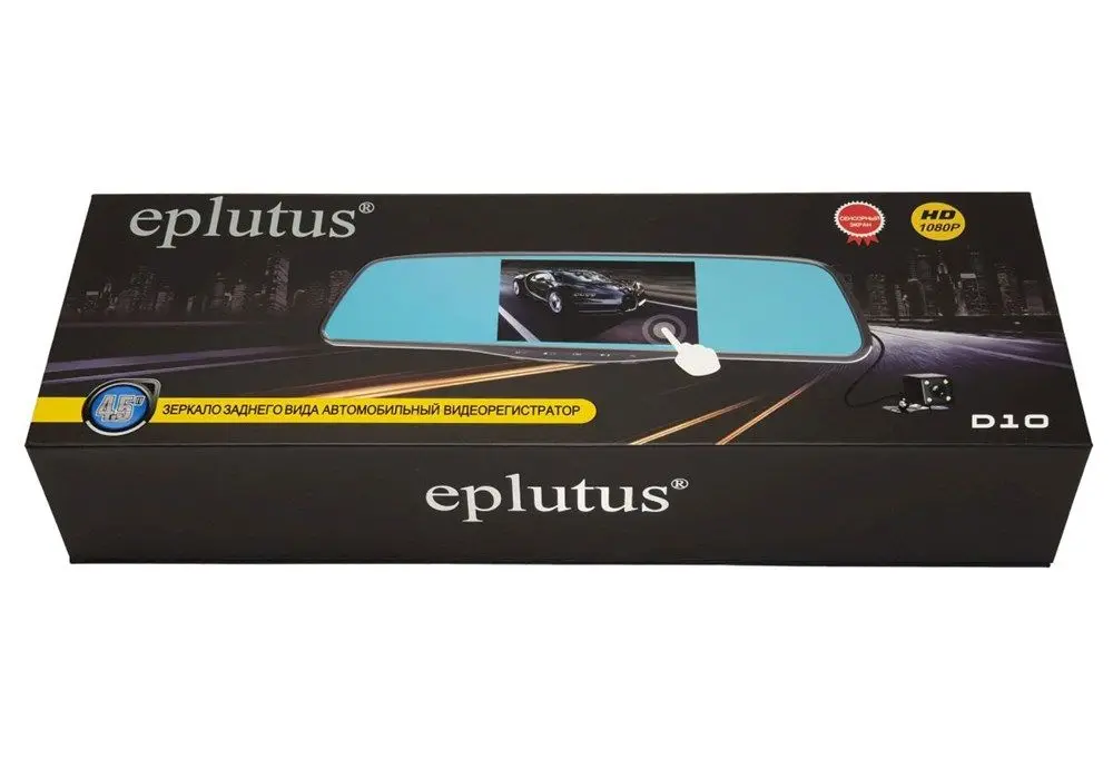 Автомобильный видеорегистратор-зеркало с сенсорным дисплеем и 2-мя камерами Eplutus D10 обладает целым рядом преимуществ. Несомненным достоинством гаджета являются его компактные размеры. Видеорегистратор Eplutus D10 в виде зеркала заднего вида не занимают много места. Именно поэтому он не будет мешать водителю. А это очень важно, ведь обычный видеорегистратор нередко закрывает от автомобилиста сигнал светофора или знак, установленный на дороге, что порой является причиной ДТП. Немаловажной положительной чертой, которой обладают видеорегистратор- зеркало Eplutus D10 является незаметность устройства. Сложность обнаружения прибора прекрасно защищает его от краж. Вторая камера заднего вида, автоматически включается при движении задним ходом, что является отличным решением для парковки в стесненных условиях плотной городской застройки. Модель автоматически переключает изображение на дисплее на камеру заднего вида при включении R-передачи и активирует подсветку камеры заднего вида. Отличительные особенности EPLUTUS D10: - Автомобильный видеорегистратор-зеркало Eplutus D10 Full HD с двумя камерами и сенсорным экраном - Стильный дизайн в ультратонком корпусе чёрного цвета - Качество записи Full HD и угол обзора 140 градусов - Большой дисплей 4,5 дюйма - Меню на русском языке - Датчик движения и G-sensor - Задняя, уличная, камера с удобным креплением на скотче 3M, которая может использоваться, как камера заднего ход