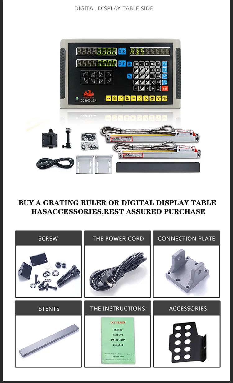 1. Этот заказ включает в себя: 1 шт. цифровой индикации GCS900-2DA, с 2 шт. линейных весов, точность 5 мкм, Длина путешествия от 50 до 1000 мм (длина путешествия может быть настроена, общая длина = длина перемещения + 138 мм). С монтажным кронштейном, соединительным кабелем, это один комплект.