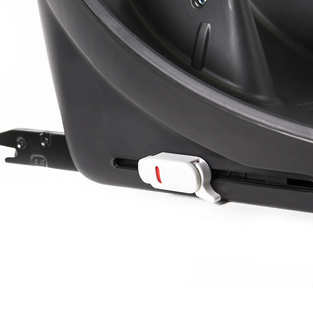 имеет регулируемые разъемы isofix и направляющие для облегчения соединения базы с креплением isofix;