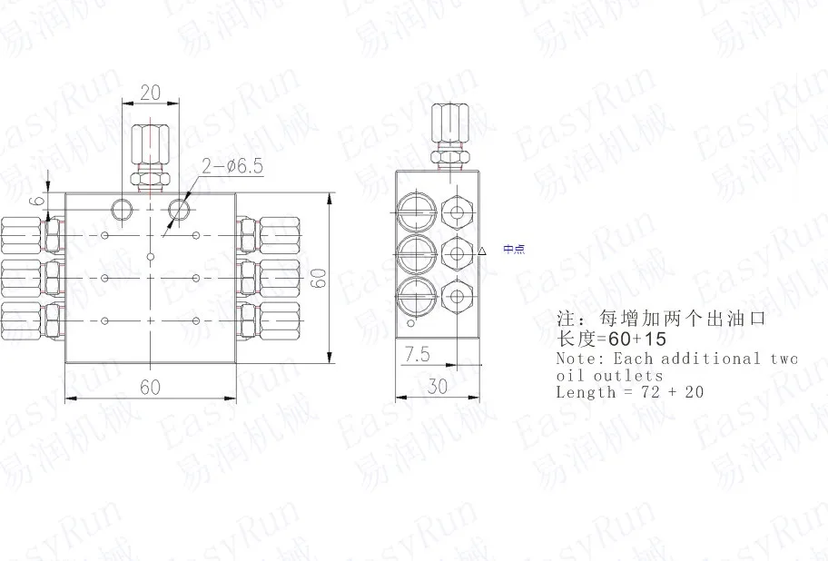 JPQ-M прогрессивный дистрибьютор масла используется в однолинейной централизованной системе смазки для количественного распределения смазочного масла