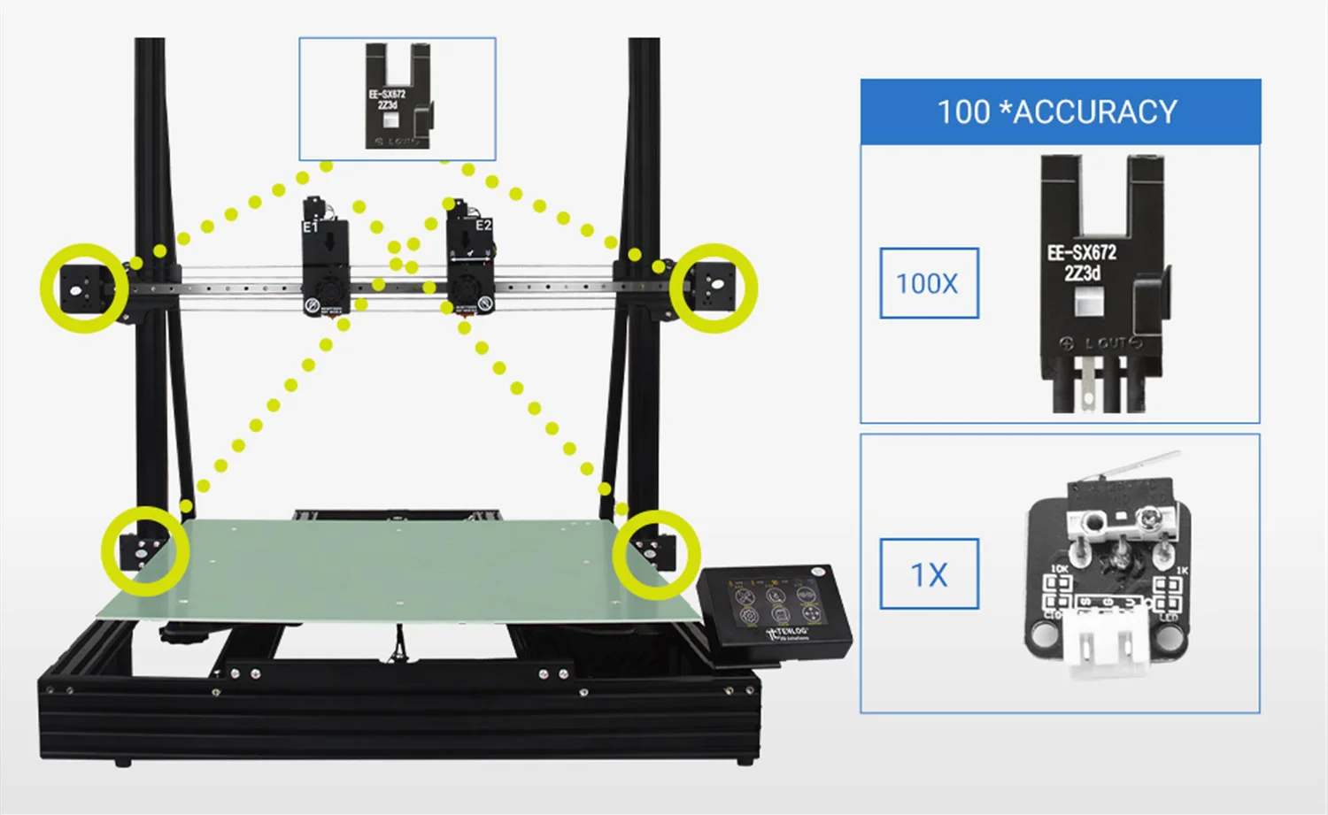 Tenlog TL-D6 лучший двойной экструдер 3D принтер достигает максимального предела рамы принтера. Супер большой формат объем здания 600 * мм * 600 мм * 600 мм. Он имеет 2 z-осевые металлические рычаги, чтобы уменьшить много сдвигов и сделать печатную платформу более стабильной во время печати. По сравнению с цельнометаллическим двойным соплом, он приносит очень низкую цену. ЭТО ДЕШЕВЫЙ двойной сопло Большой принтер, но он работает стабильно, и объект печати имеет высокую точность.