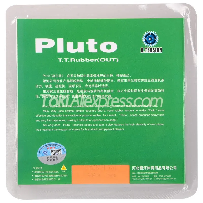 -YINHE использует оптимальную структуру прыщей и резиновую формулу noverl, чтобы сделать «Плутон» более эффективным и более тусклым, чем традиционные пипсы из резины. В результате «Плутон» быстро производит тяжелое вращение и очень плоские траектории, что затрудняет адаптацию противников.