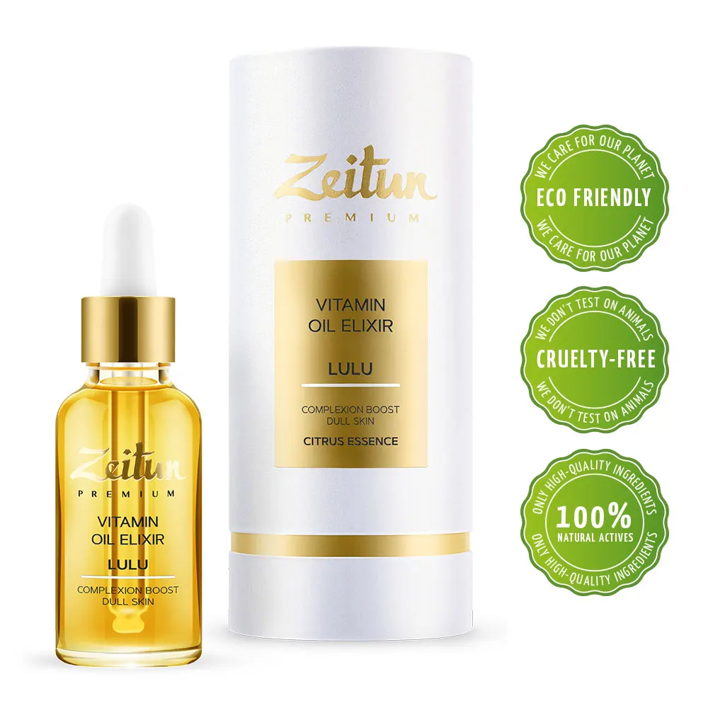 Масляный эликсир-активатор сияния Zeitun Premium LULU – это насыщенный витаминный комплекс живых масел, который насыщает энергией тусклую, атоничную кожу лица, возвращает ей здоровый цвет, тонус и счастливый вид.