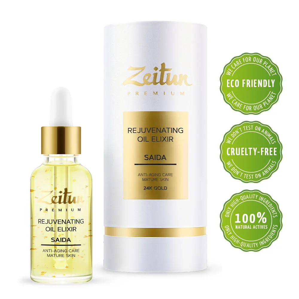 Ночной масляный эликсир Zeitun Premium SAIDA с частицами 24-каратного золота – истинная драгоценность для кожи лица после 40 лет: клинически доказанная эффективность компонентов его состава позволяет заметно восстанавливать свежесть и красоту кожи, надолго сохраняя ее молодость.