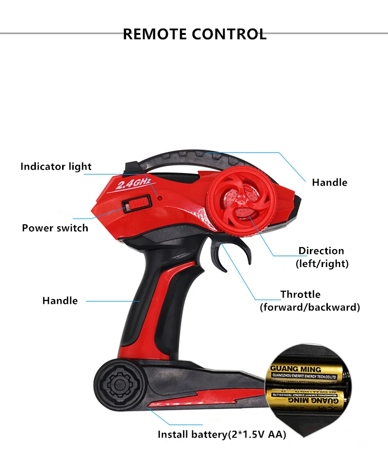 Бренд: азма N0. : A025 Масштаб: 1:12 Размер: 30*20*15 см Аккумулятор: 6 в 700 мАч NI-CD Зарядное устройство: USB кабель Время работы: 15 минут Время зарядки: 2 ч Материал: ABS RC: 2,4G Цвет: черный/красный Режим вождения: 2WD (задний привод) Функция: высокая скорость, бездорожье, Большие весы, дизайн