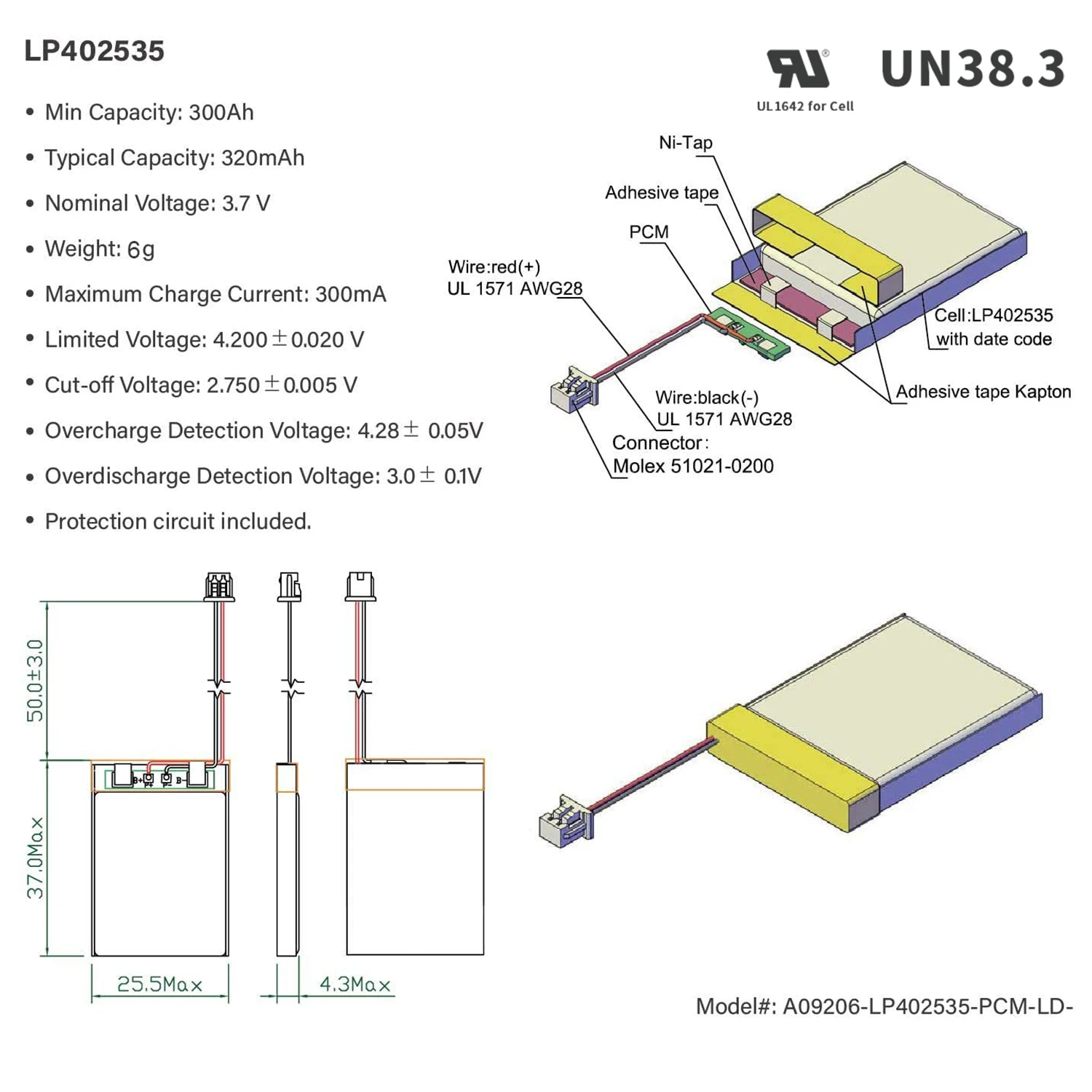Capacity: 320mAh