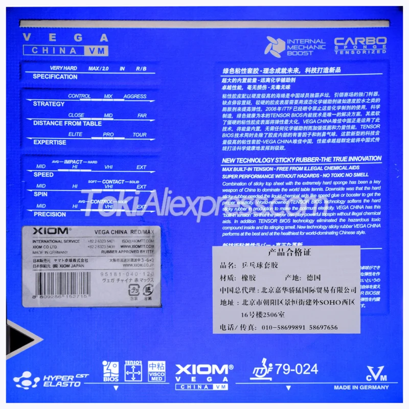 Оригинальная резиновая губка для настольного тенниса XIOM VEGA, Китай