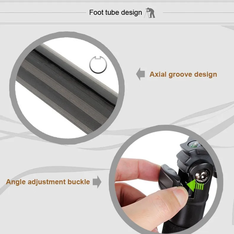 Особенности:1. Новое поколение высокоплотных труб из углеродного волокна, с использованием восьми слоев различных углов углеродного волокна ошеломленные ламинированные, высокотемпературные отверждения, высокого давления укрепления полимерной структуры.2. Интенсивность жесткости, высокая эффективность амортизации, лучшая термостойкость и коррозионная стойкость.3. Двойной уровень духа, три регулировочных ручки дизайн демпфирующий эффект шаровой головки, реализуя любой угол съемки, точный и эффективный.4. БЫСТРОРАЗЪЕМНАЯ пластина с надежным зажимом и резиновым ковриком, двойная защита камеры от падения аварии.5. Фиксатор регулировки угла ноги обеспечивает одиночную регулировку каждой ноги.6. Типичный регулирующий дизайн лифта, предлагающий различный амортизирующий эффект, зависит от веса вашей камеры.7,4-секции колонны ногу с пряжкой замки для удобной работы ногами, которую вы хотите высоту при съемке.8. Функция перевернутой центральной оси обеспечивает самую низкую съемку.9. Портативная сумка для штатива позволяет легко носить с собой.10. Лучший выбор для SLR камеры в вашем путешествии.Технические характеристики:Материал: углеродное волокноТип головки: вращающаяся на 360 ° шаровая ГоловкаДлина в сложенном виде: 580 мм/22.83inМаксимальная высота штатива: 1580 мм/62,20 дюймаМакс. Диаметр трубки: 25 мм/0,98 дюймаКоличество столбцов: 4 секцииГрузоподъемность: 8 кг/17,63lbВес изделия: 1,68 кг/3,70 фунтовПосылка список:1 * штатив из углеродного волокна с шаровой головкой1 * сумка для переноски