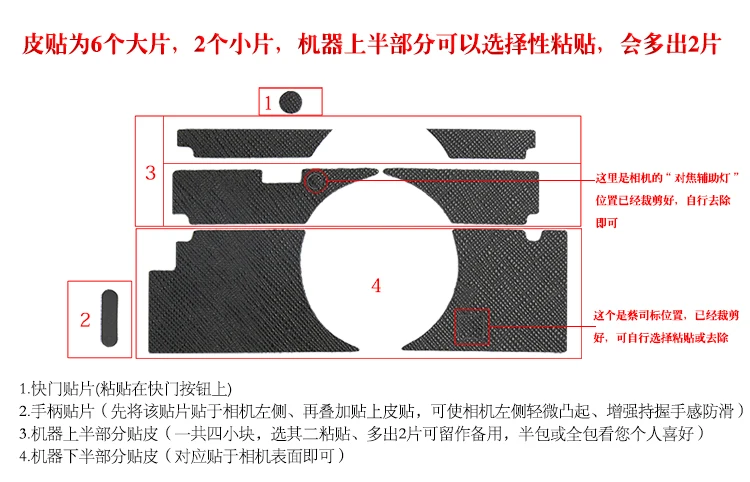 Новый кожаный патч RX100M6 имеет в общей сложности 8 штук + один кусок патча кнопки затвора, два больше частей нижней накладки, чем предыдущий стиль, и только черный личи шаблон доступен временно