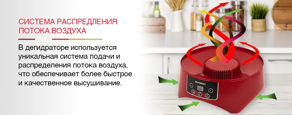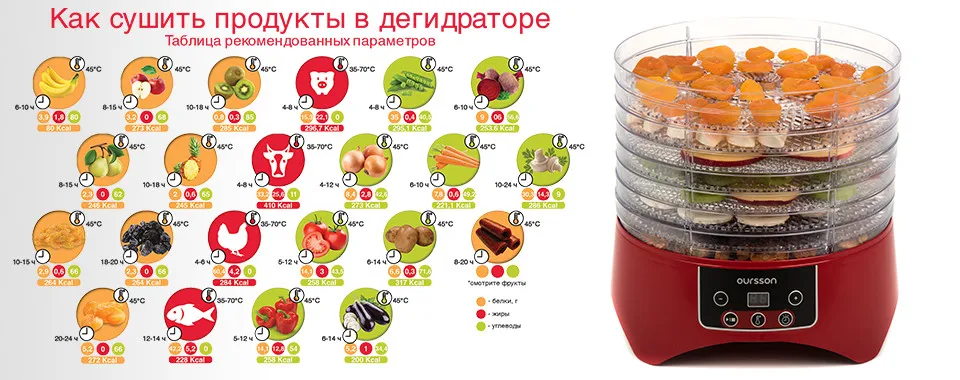 Дегидратор Oursson DH3501D – это электро-бытовой прибор, который поможет прекрасно справиться c заготовкой овощей, фруктов, грибов, вялением мяса или рыбы. Простое управление поможет выставить правильную температуру 38/48/58/68°С и время до 12 часов. Прибор изготовлен из безопасного BPA Free ABS пластика, имеет 8 вместительных лотка для сушки. Во время сушки или вяления из фруктов, овощей, мяса или рыбы испаряется излишняя влага, при этом сама структура клеток остается в целости, продукты сохраняют свой природный, естественный цвет, вкус и аромат, витамины, микроэлементы и ферменты.