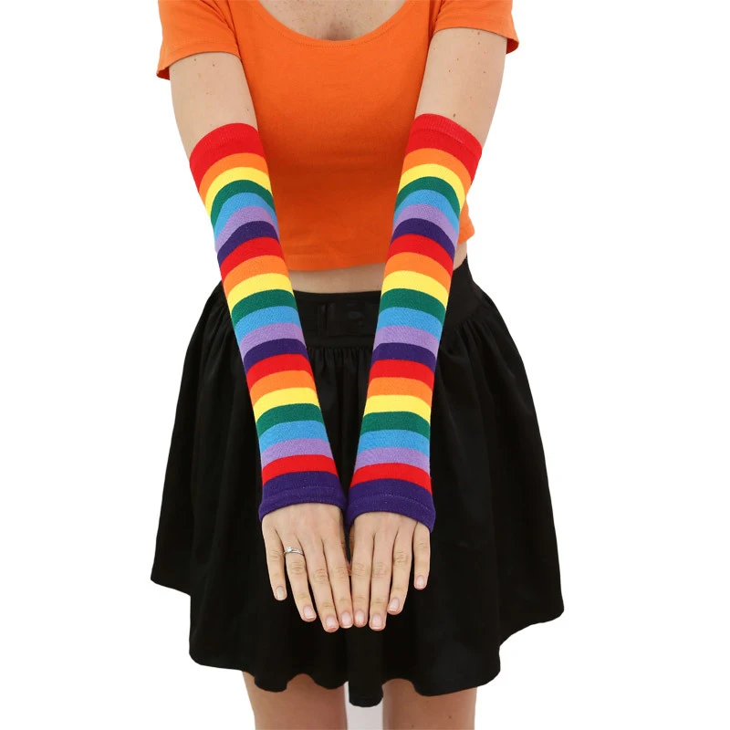 Хлопковые перчатки без пальцев в радужную полоску с длинным рукавом