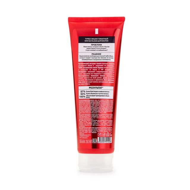 Органический экстракт томата придает волосам роскошный объем и укрепляет их структуру.