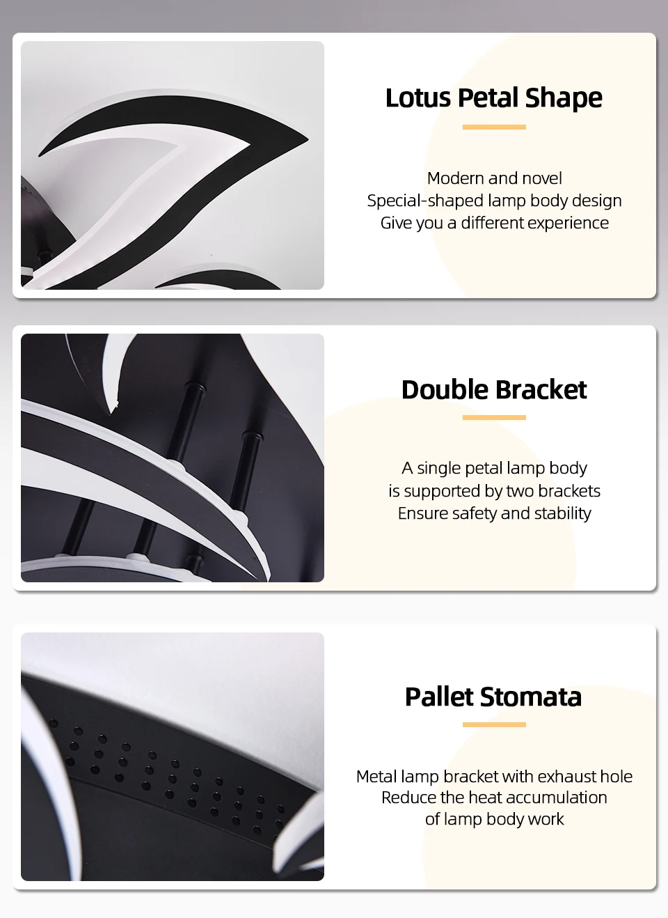 Наша светодиодная лампа-это дизайн с лепестками, простой и красивый, и может быть 3 оттенка светильник, вы управляетесь с помощью пульта дистанционного управления и приложения одновременно, удобно для вашей жизни.