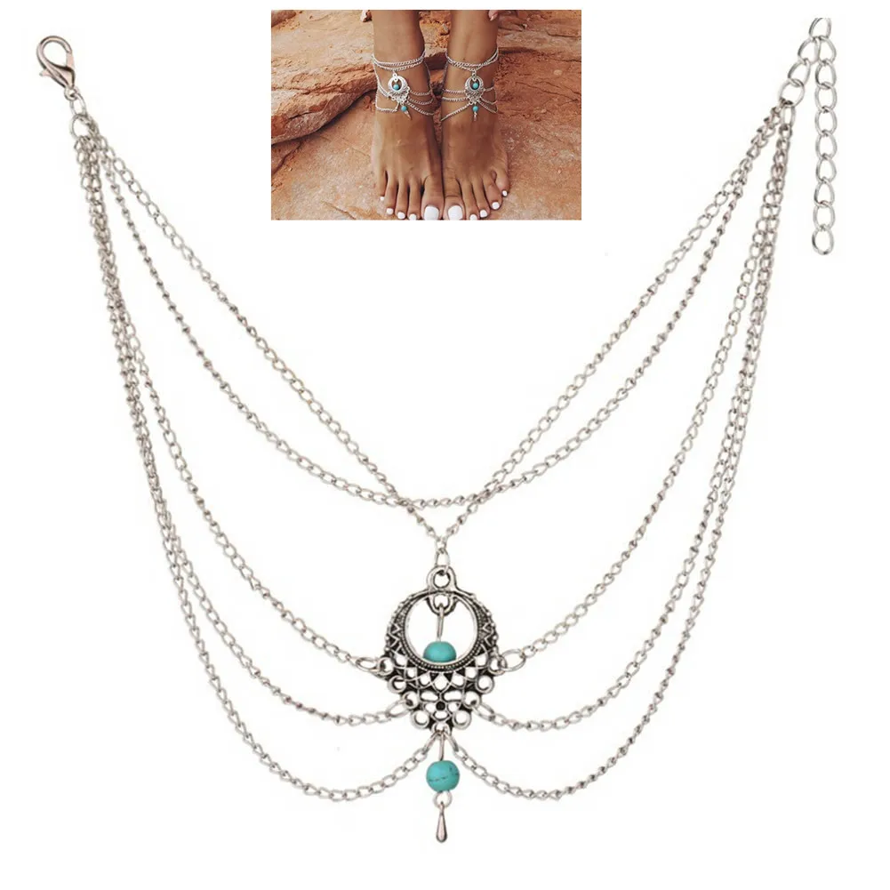 Женский ножной браслет Многослойный Бирюзовый Капля воды кисточка лодыжки суставы босиком пляж бижутерия для ног ножной браслет красочный