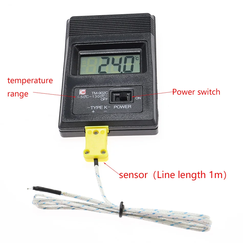 Наименование: тестер температуры Модель изделия: TM-902C Диапазон измерения: -50 ~ 1300 °C Тип датчика: термопара типа K Разрешение: 1 °C Использование батареи: 2 шт. * AAA батареи (не входят в комплект) Размер изделия: 108*23*72 мм Диапазон измерения: от-50 ℃ до 1300 ℃ Рабочая температура: 0 ℃ до 40 ℃ Температура хранения: от-10 ℃ до 50 ℃ Вес нетто: 70 г (аккумулятор в комплект не входит)