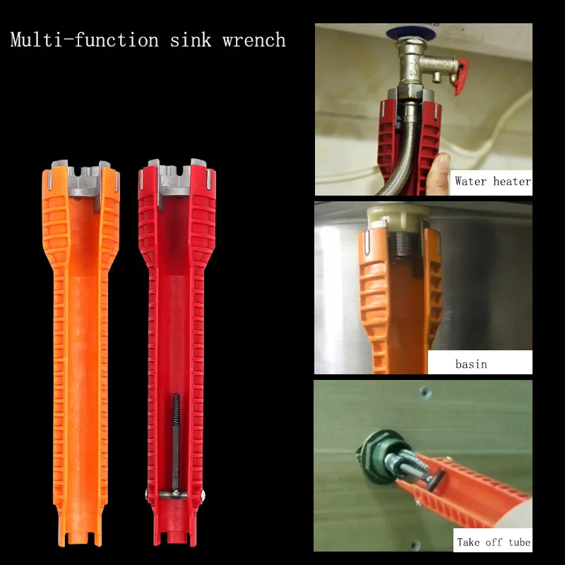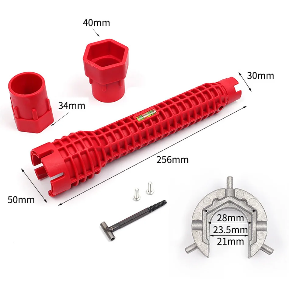 Характеристики: Наименование: Ремонтный ключ для раковины Материал: пластик, углеродистая сталь, алюминиевый сплав Цвет: красный, оранжевый Система: метрическая Размер: 256*50 мм (как показано на рисунке)
