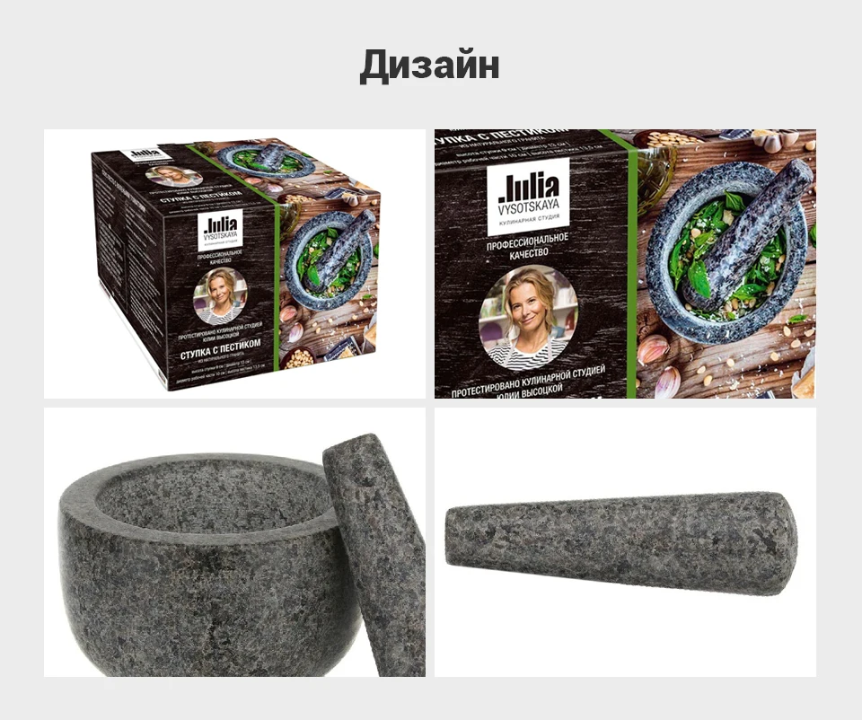 Благодаря своему весу и прочному материалу ступка не будет скользить по поверхности во время работы.