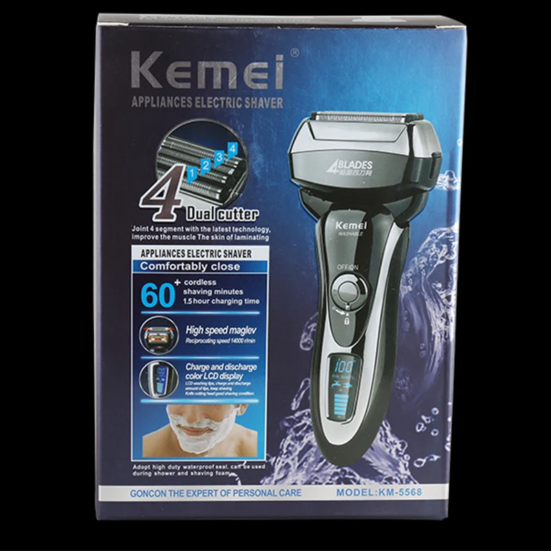 Моющаяся электронная бритва Kemei с 4 лезвиями, триммер для усов и бороды, бритва Kemey, электробритва Rasor, бритва для усов