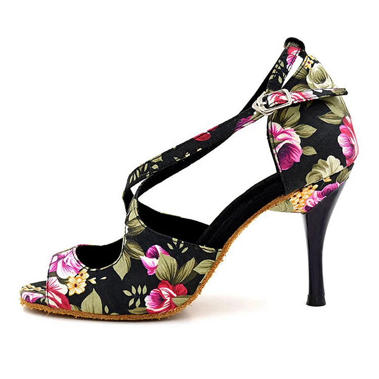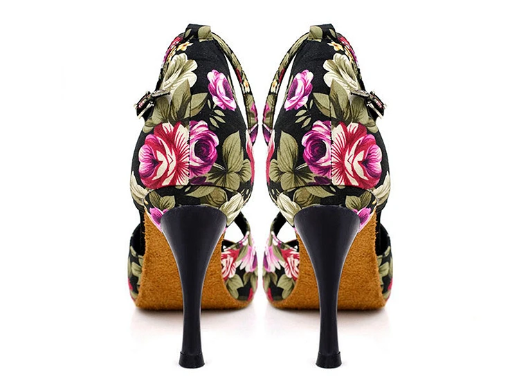 Женские танцевальные туфли Танго/вальса/румбы/самбы; бальные туфли; женские черные атласные туфли с цветочным принтом на мягкой подошве по индивидуальному заказу CW055