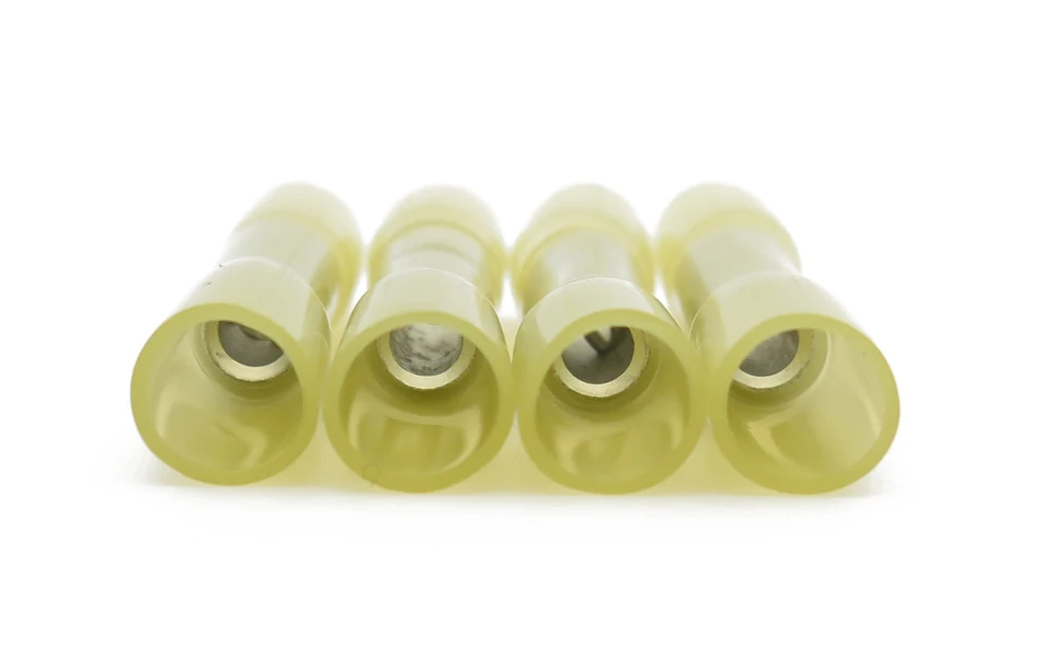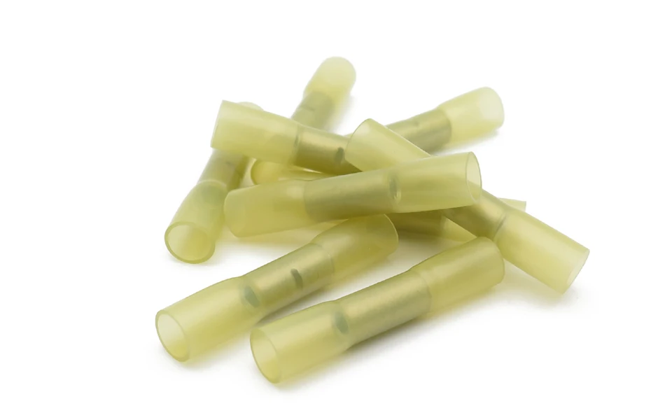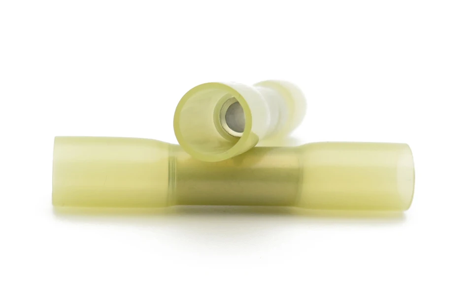 BHT-5.5 желтый термоусадочный изолированный стыковый соединитель водонепроницаемый клеммный соединитель подходит для автомобильных морских и электрических сделано BIDE ELEC из Китая -100% новый и высокое качество. -Гарантированно удерживает сильные щипцы. -Стандартный обжим, а затем уплотнение Термоусадочных стыковых соединителей. -Обеспечивает визуальный осмотр, предотвращает коррозию и обеспечивает водонепроницаемое уплотнение. -Для достижения наилучших результатов используйте пистолет горячего воздуха до тех пор, пока он не уменьшит размер и поток клея, заполняя зазоры в терминале.