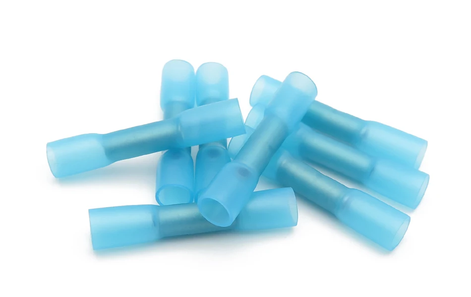 BHT-2 синий термоусадочный изолированный стыковый соединитель водонепроницаемый клеммный соединитель подходит для автомобильных морских и электрических сделано BIDE ELEC из Китая -100% новый и высокое качество. -Гарантированно удерживает сильные щипцы. -Стандартный обжим, а затем уплотнение Термоусадочных стыковых соединителей. -Обеспечивает визуальный осмотр, предотвращает коррозию и обеспечивает водонепроницаемое уплотнение. -Для достижения наилучших результатов используйте пистолет горячего воздуха до тех пор, пока он не уменьшит размер и поток клея, заполняя зазоры в терминале.