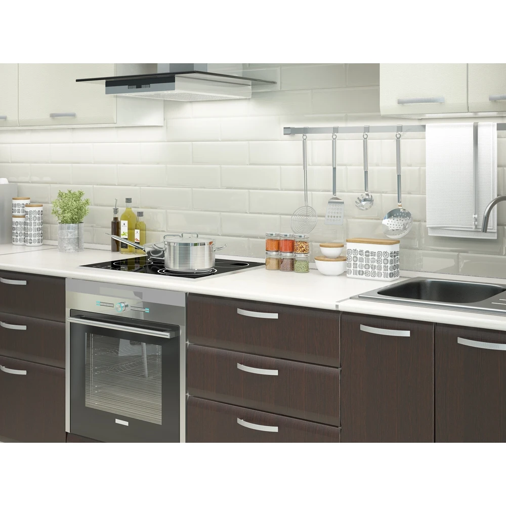 Бытовая техника, мойка и стеновая панель в комплект не входят.