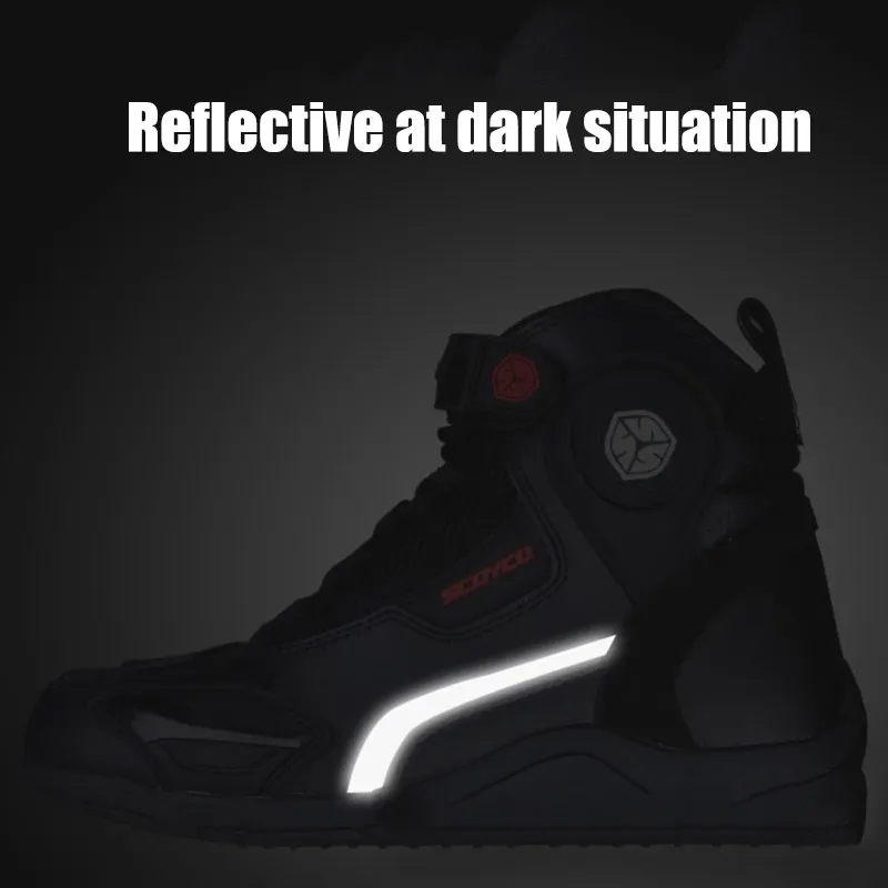 SCOYCO мотоциклетные ботинки, противоскользящие, дышащие, безопасные, ударопрочные, высокие, для верховой езды, с защитой, Байкерская обувь MT015
