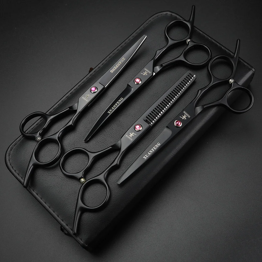 В комплект входит: 1 кожаная сумка, 1 6-дюймовые ножницы, 1 6-дюймовые ножницы, 1 расческа, 1 6-дюймовые ножницы для гибки верхней части, 1 6-дюймовые ножницы для гибки нижней части