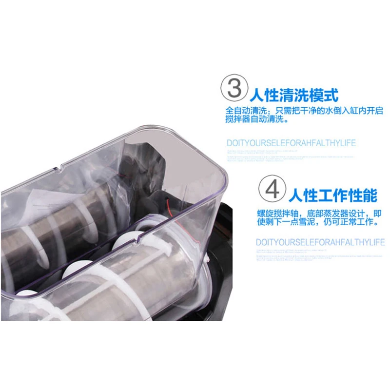 1.Commercial refrigeration technology; 2.The system is fully computer controlled; 3.Used to make slush, cold drinks and juices; 4.Excellent evaporation design, the machine keeps running when there are few drinks;Fives The intelligent control system can adjust the hardness of the slush; 6.Fault display function; 7.User-friendly design, automatic cleaning function; 8.The cylinders can be individually controlled for each volume. If the beverage in one tank is sold out, the cooling and work can be stopped, but the other tank is still working; 9.Personalized design, stylish appearance, smooth lines, color choice; 10.Provide different voltages and frequencies, such as 220V, 110V, 50HZ, 60HZ;