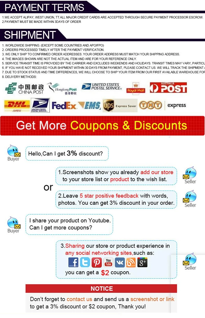 1.We support safe and fast transport,special freight to negotiate with the seller logistics standards .