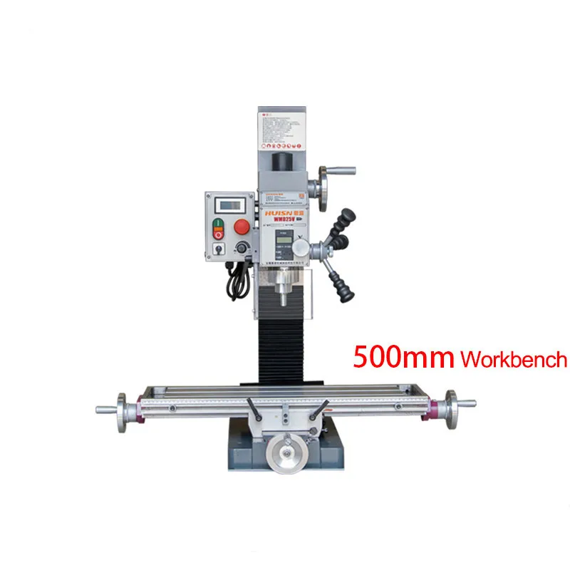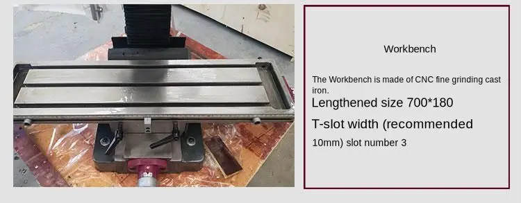 Название продукта: небольшой сверлильный и фрезерный станок Диаметр сверления: 25 мм Способ изменения скорости: Плавное изменение скорости Нажатие: M16 Диапазон скоростей: 50-2500 об/мин Диаметр фрезерного станка: 63 мм Угол поворота шпинделя влево и вправо: грунт 90 ° Размер верстака: 700X 180 мм Расстояние от Центр шпинделя до колонки: 201 мм Рабочий стол для путешествий: 520X178mm Расстояние от торцевой поверхности шпинделя до рабочей поверхности: 45 ~ 300 мм Т-образный разъем: 3X 12 мм Мотор: 750 Вт-220 В Конус шпинделя: MT3 Размер упаковки мм: 700x700x840 Ход шпинделя: 50 мм Вес нетто: 125 кг Концевая фрезерование: 16 мм
