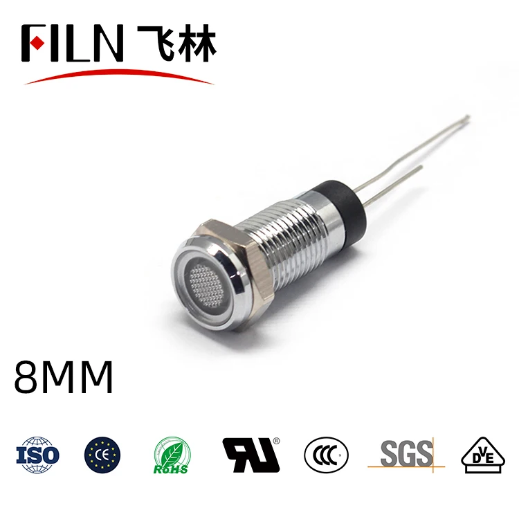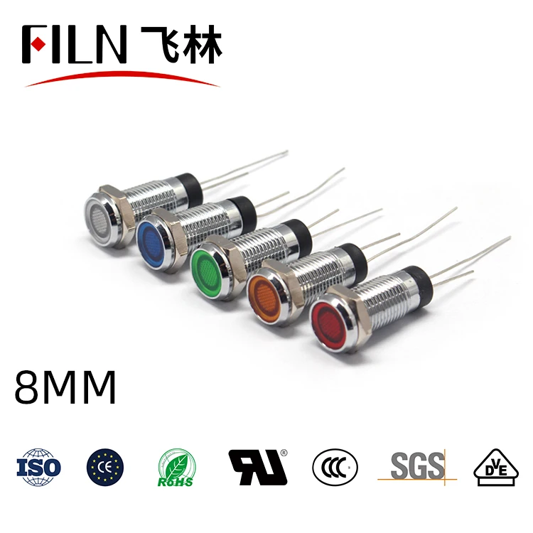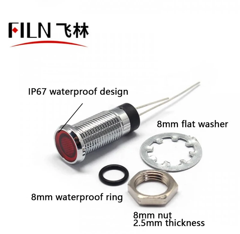 FILN CE плоская головка 8 мм 12 в 24 в 110 В 220 в металлический светодиодный индикатор светильник для кухонного оборудования сигнальная лампа без провода