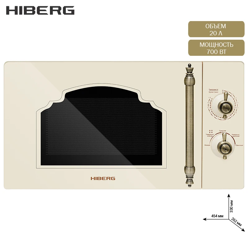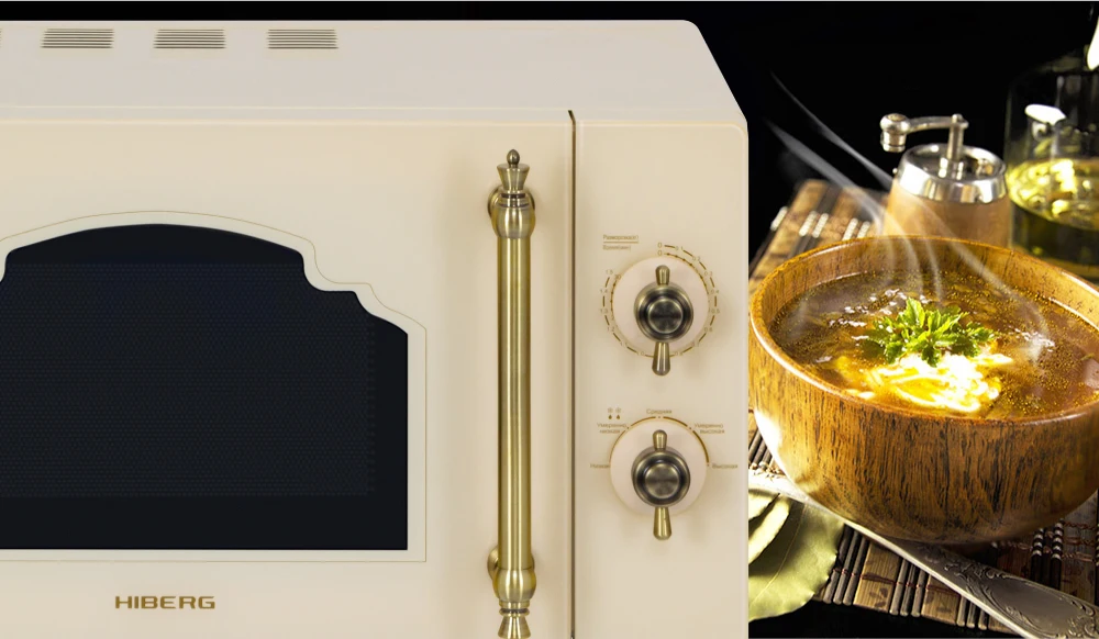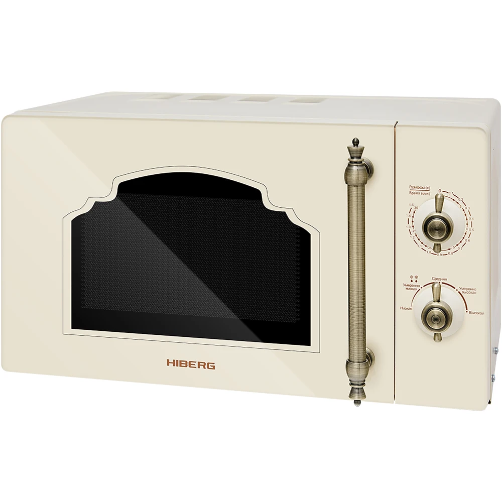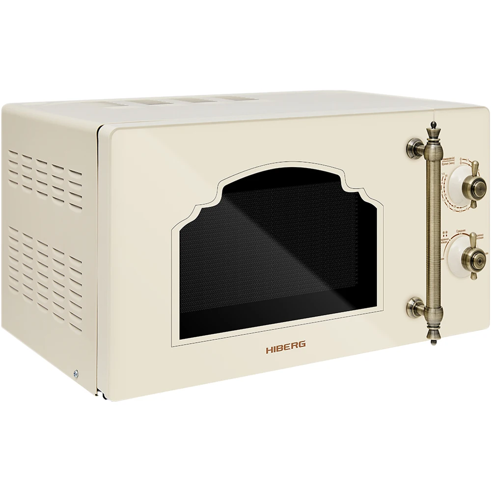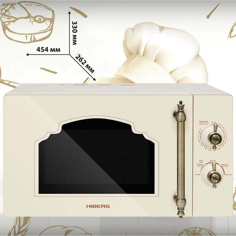 Отдельно стоящая микроволновая печь HIBERG VM-4288 YR выполнена в ретро дизайне в благородном бежевом цвете, отлично подойдет для интерьера в стиле кантри, Прованс и классическом.
