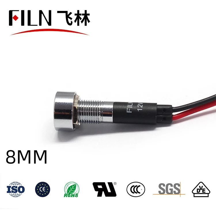Filn 8 мм IP67 водонепроницаемый 12v 24v 220v 110v оборудование контрольная лампа светодиодный индикатор светильник с проводом
