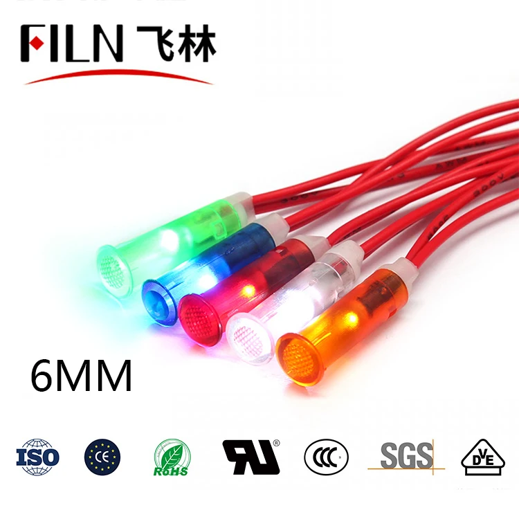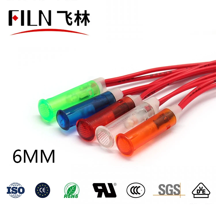 Высококачественная пластиковая световая индикаторная лампа FILN с проводом, 6 мм, 12 В, 110 В, 24 В, 220 В