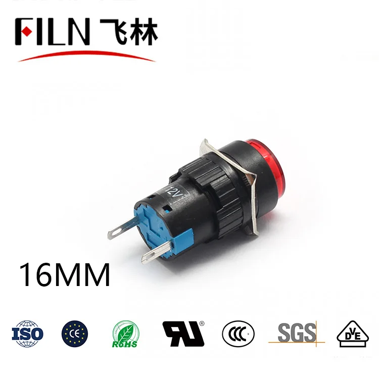Filn пластиковый одобренный CE различный цвет светодиодному Индикатору 16 мм Размер крепления 12v 24v 110v 220v контрольная лампа с булавками