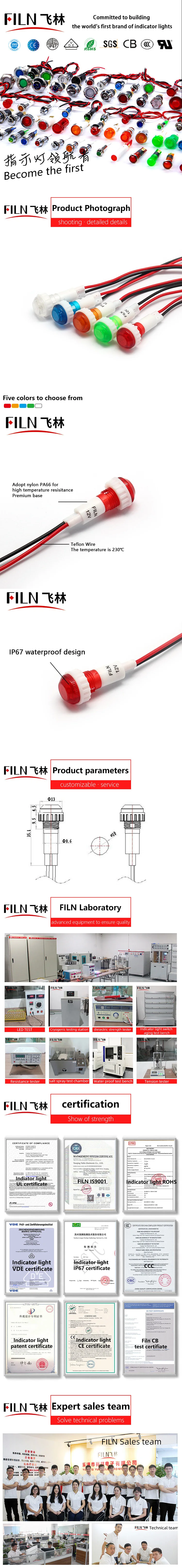FILN резьба пластик высокое качество 10 мм 12 в 24 в 36 в 110 В светодиодный сигнальный свет белый синий желтый Пилотная лампа