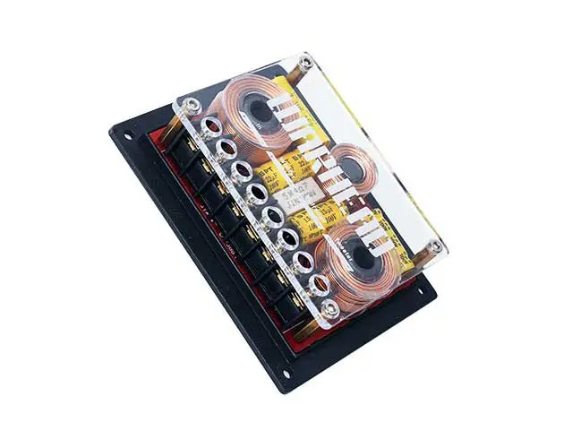 Количество полос 3 Мощность, 300 Вт Сопротивление, 4 Ом Частота раздела, НЧ 1300, СЧ 1300/4500, ВЧ 4500 Гц Крутизна среза, НЧ 12, СЧ 6, ВЧ 12 дБ/окт Акустические терминалы до 12GA (3,31 мм2) Размеры, 115 x 90 x 32 мм