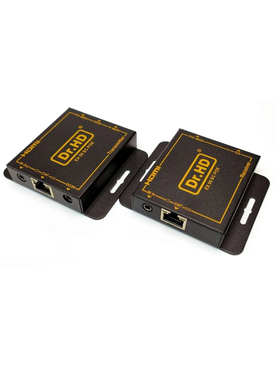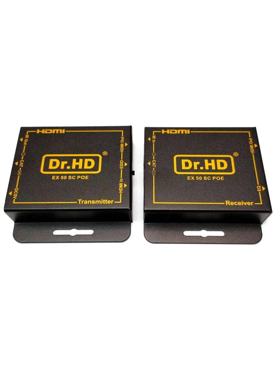 Обновленная модель популярного и самого доступного HDMI удлинителя по витой паре Dr.HD EX 50 SCB. В новой версии появился HDMI OUT, для подключения контрольного монитора к удлинителю и технология POE, которая позволяет запитать приемный блок по кабелю от передатчика. Передача видео и аудио сигнала высокой четкости на расстояние до 50м.