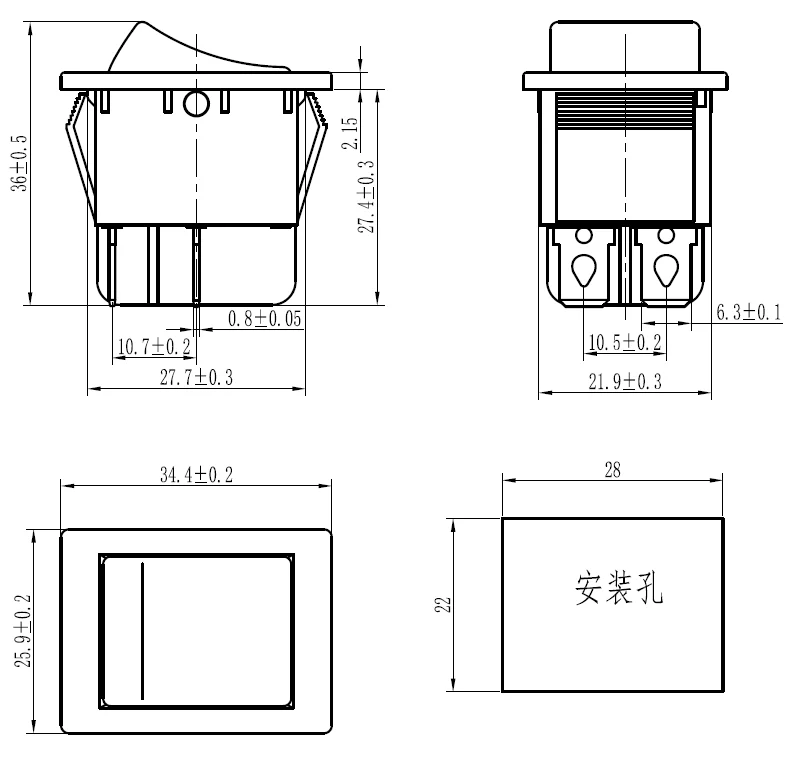 FILN 22x28 мм on off 16 А/250 В 4 Винтовых штифта DPST T85 авто лодка морской тумблер переключатель светодиодный дом 220 В белый корпус