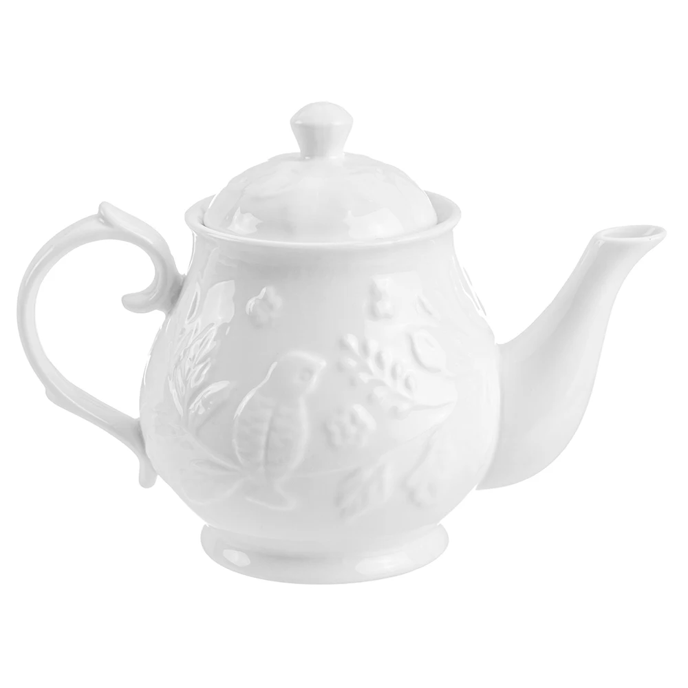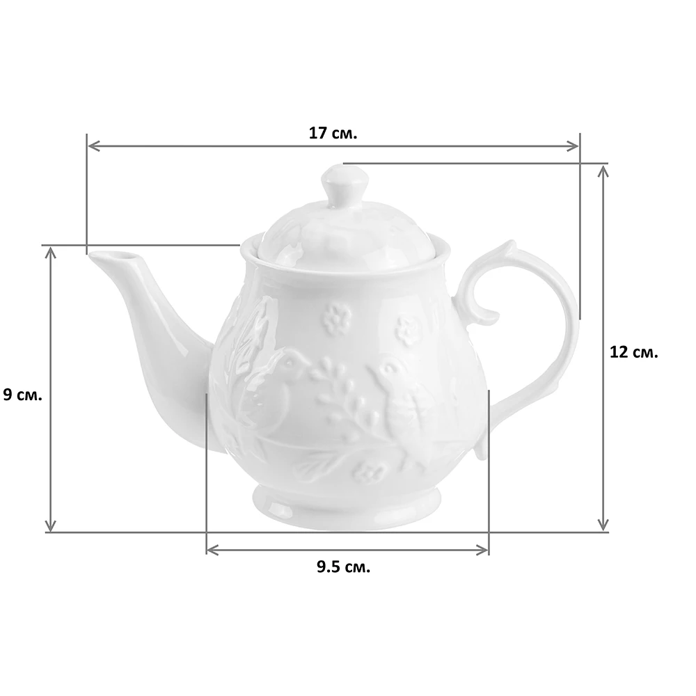 Чайник серии «Птички на ветке» объемом 430 мл выполнен из высококачественного белого фарфора с рельефным рисунком. У чайника широкое горло — его удобно мыть. А ручка удобно ложится в руку. В серии посуды из белого фарфора представлен широкий ассортимент товаров для сервировки стола, которые, несомненно, впишутся в любой интерьер благодаря лаконичному дизайну, натуральным материалам и высокой функциональности. Такому подарку будет рада любая хозяйка!