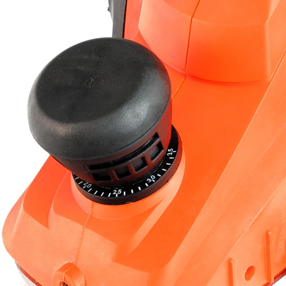 • Удобный поворотный механизм регулировки глубины строгания, совмещенный с дополнительной рукояткой.