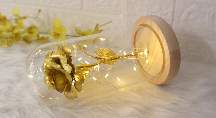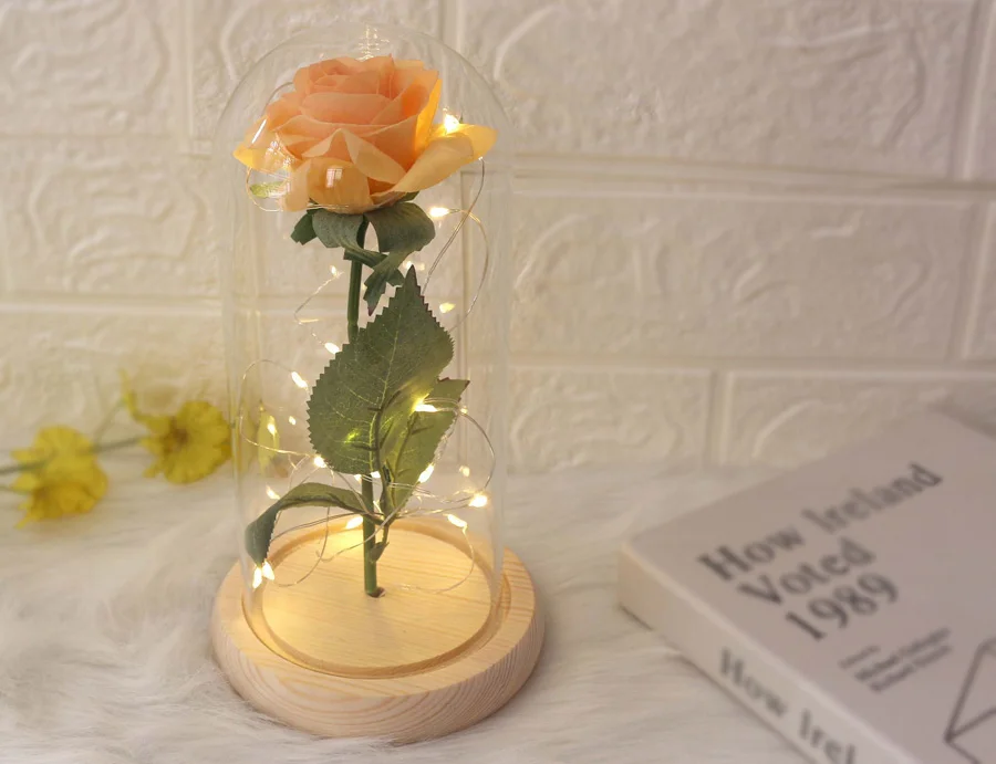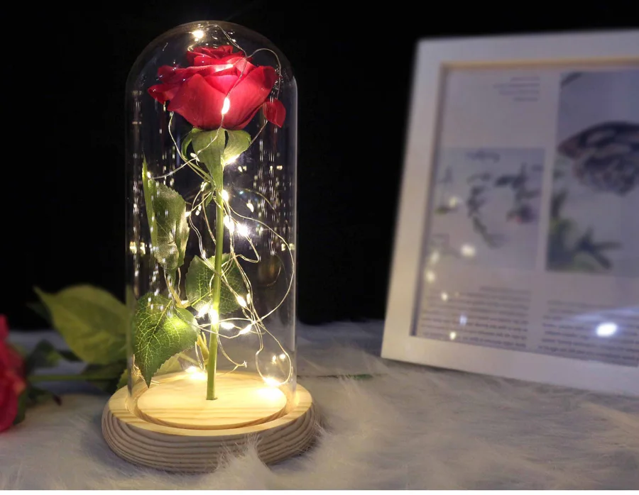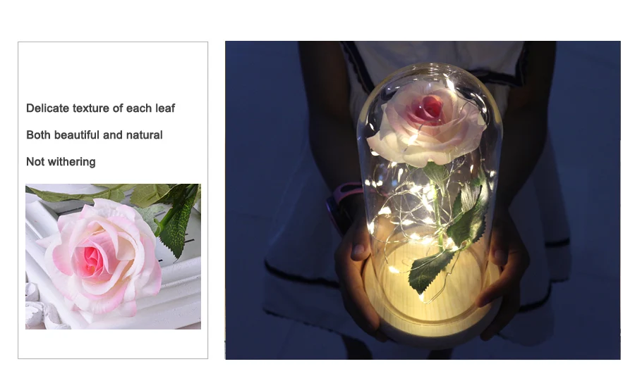 Описание продукта: Dream of Flowers стремится трансформировать Самые свежие и Аутентичные розы в красивую и долговечную любовь, чтобы помочь близким сохранить свою долговечную любовь и насладиться любовью к романтике. Роза никогда не исчезнет, как вечная любовь! Не только подарок для любимой, но и лучший выбор для любимого человека или друга. Это романтический подарок-сюрприз на День святого Валентина, День матери, Рождество или годовщину. Купольное стекло с красной розой включает: Красная шелковая Роза, стеклянный купол, деревянная основа, защитная коробка и губка. Длина светодиодной ленты: 90” Установка не требуется, поставляется в сборе и готова к использованию. Рифленая деревянное основание Оборудование может быть легко разобрано, идеально подходит для воссоздания содержимого в соответствии с вашими предпочтениями Посылка включает в себя: -1 красный цветок розы -1x деревянное основание -1 светодиодная полоса -1x стеклянный купол -1x защитная коробка и губка Предупреждение: ①. Пожалуйста, не прикасайтесь к светодиодной ленте, которая используется руками, когда они мокрые. ② Максимальная температура светодиодной ленты может достигать 100 °F, поэтому, пожалуйста, не прикасайтесь к ней. ③ Точка зажигания шелковых цветов составляет более 750 °F, а температура светодиодного светильника не вызовет сжигания шелковых цветов, поэтому, пожалуйста, не волнуйтесь.
