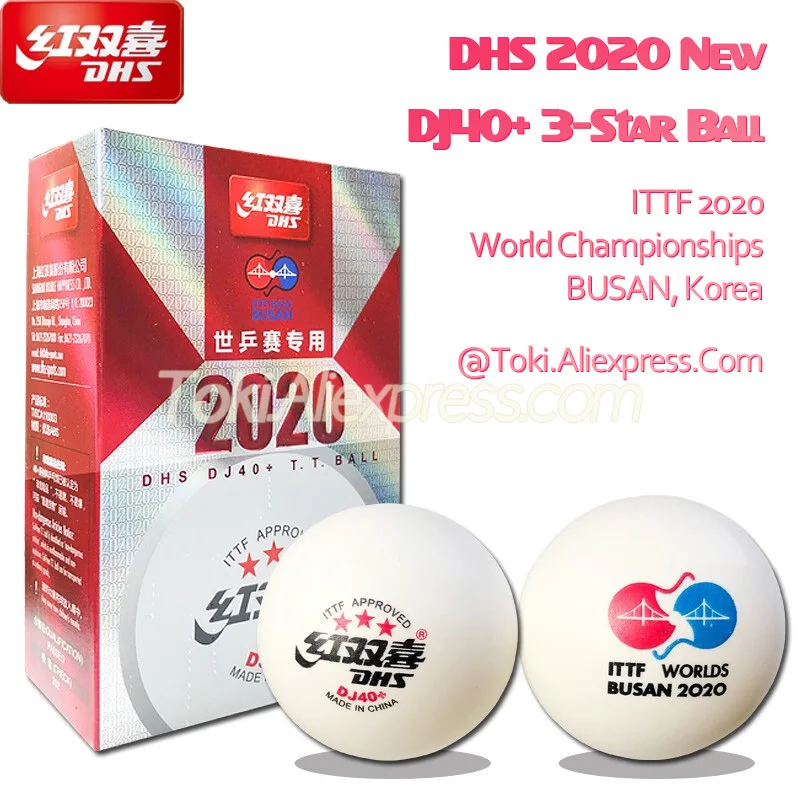 Пусан DHS DJ40 + 3-звездочный мяч для настольного тенниса ITTF 2020 Пусан Чемпионат Мира Пластиковые ABS DHS 3 звезды мячи для пинг понга