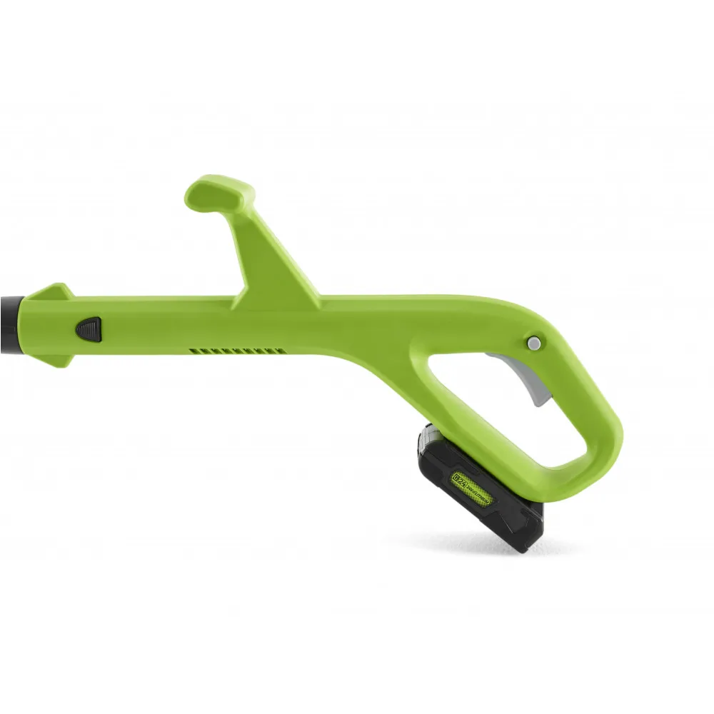 Триммер аккумуляторный Greenworks G24LT30MK2 24V – базовая модель в линейке садовых электрических триммеров Greenworks G-24. Его основное назначение – кошение травы и мелкого кустарника. Применяется там, где трудно косить обычной газонокосилкой - узкие пространства, неровная почва, а благодаря поворотной режущей части может применяется в качестве кромкореза для подравнивания кромки газона, дорожек, травы вдоль заборов.