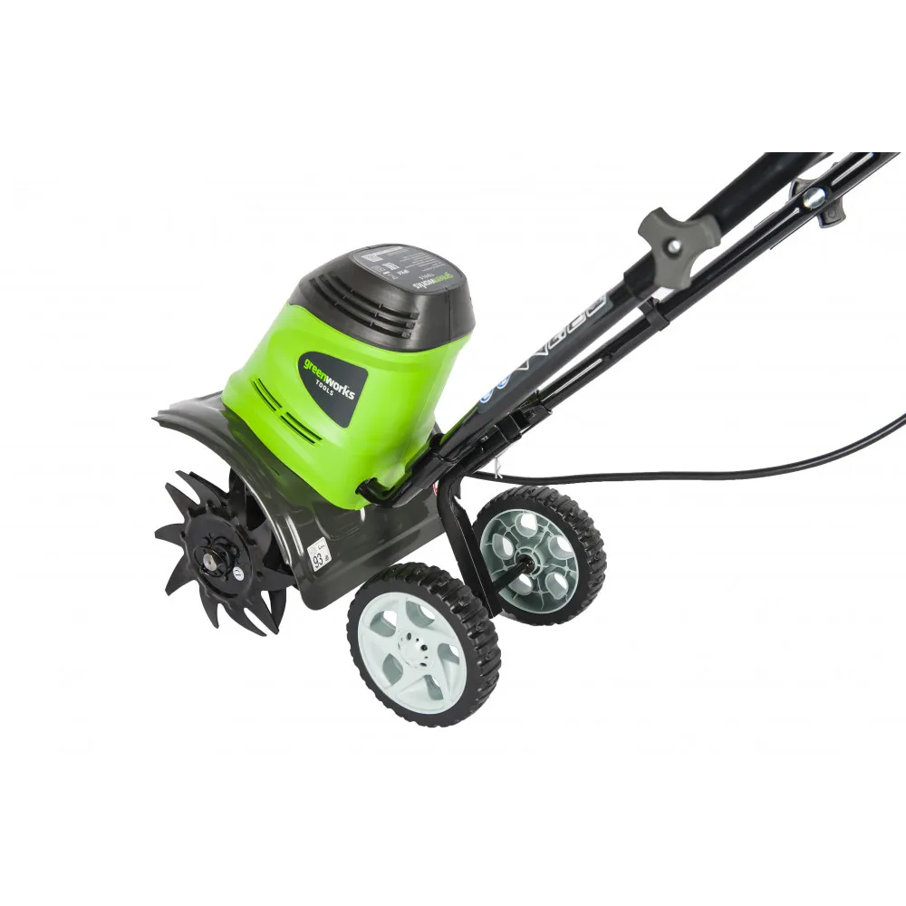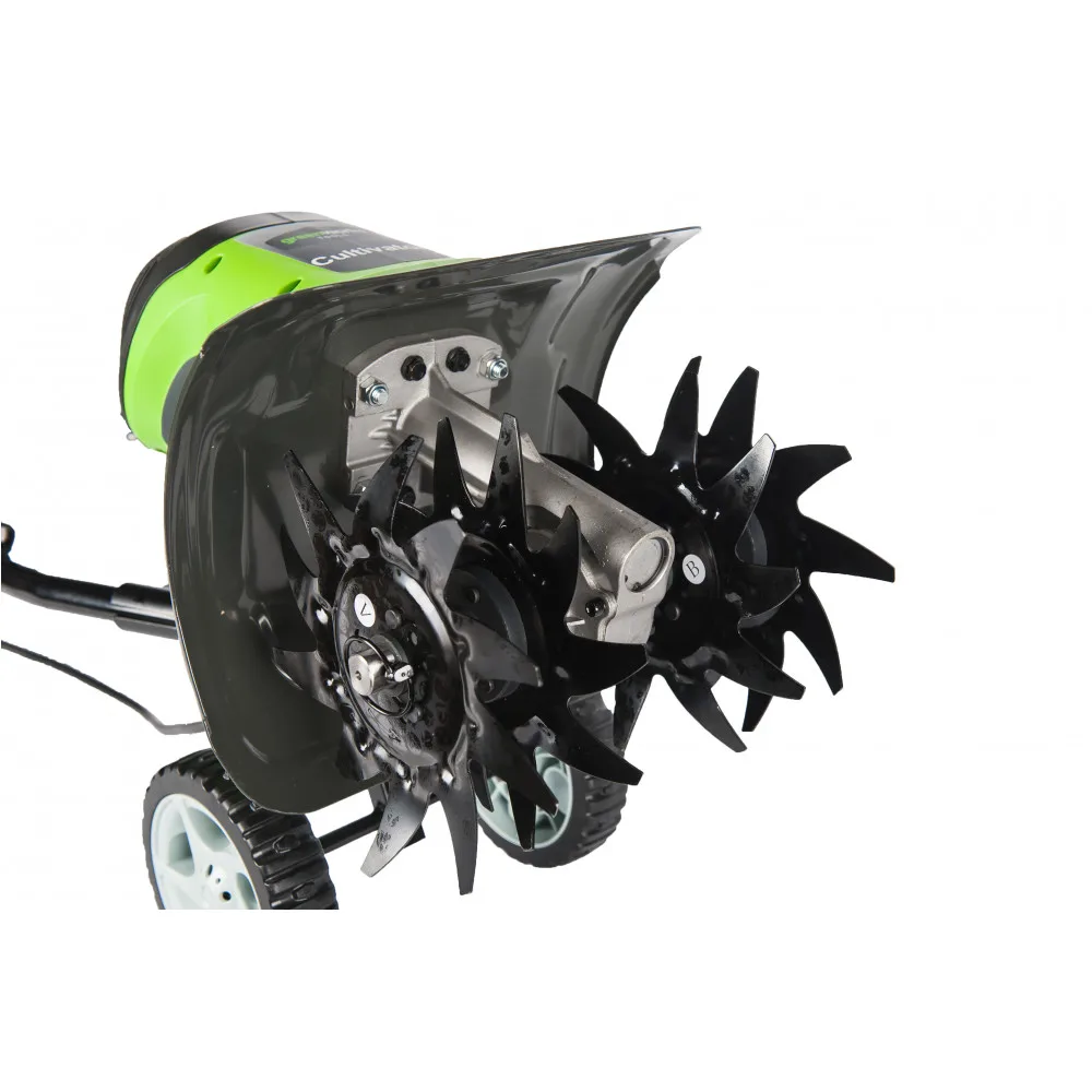 Культиватор электрический Greenworks мощностью 950W (модель GTL9526) - предназначен для обработка земли на небольших участках, например грядках, в цветниках и клумбах. Там, где земля уже подвергалась обработке, он станет незаменимым помощником для рыхления почвы грядок в сезон посадки, а также для работы в малогабаритных теплицах.