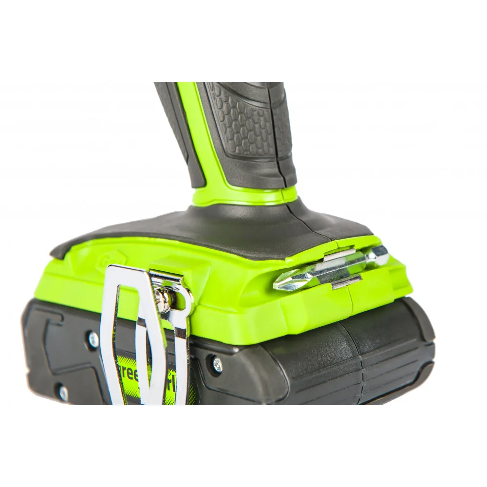 А главное - такой двигатель в 10 раз надежнее обычного щеточного и не требует замены щеток. Гайковерт оснащается быстро зажимным патроном под шестигранную биту размером ¼ дюйма. Работает данная модель от 24V аккумулятора, напряжение которого на 30% выше принятого 18V стандарта, более того, этот аккумулятор может применяться для работы с более чем 20-ю устройствами, в том числе и садовый инструмент линейки Greenworks G-24V.